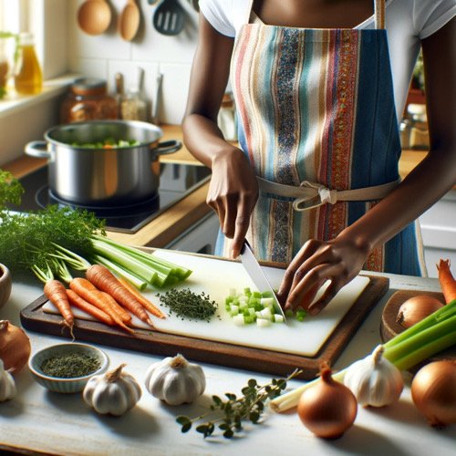 - Chop Vegetables: Chop the carrots, celery, and onion into bite-sized pieces. Mince the garlic.